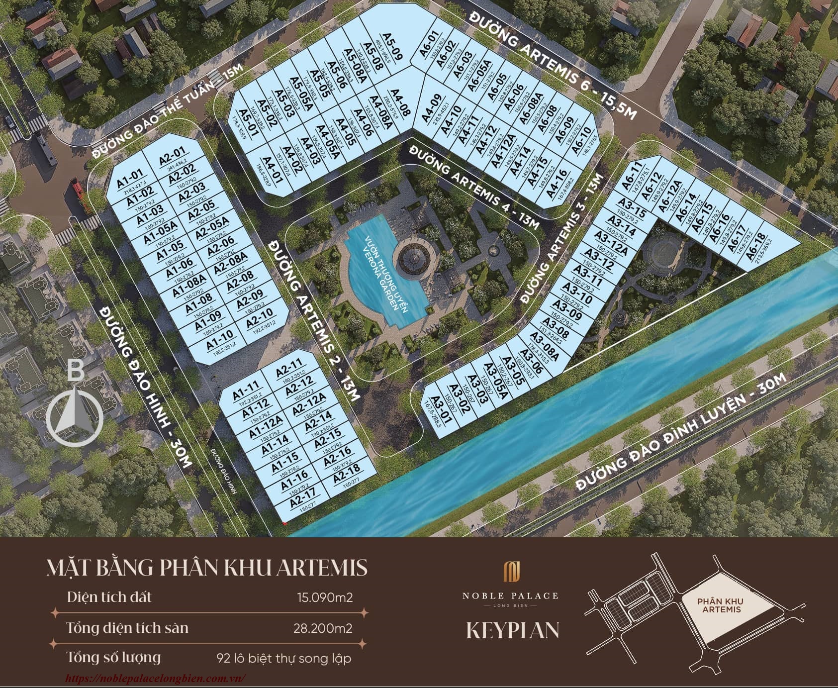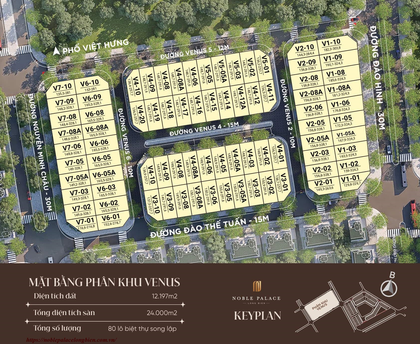 Mặt bằng tổng thể của dự án Noble Palace Long Biên được quy hoạch bài bản với phong cách kiến trúc cổ điển Châu Âu. Dự án được chia thành 2 phân khu chính, mỗi phân khu đều có thiết kế riêng biệt nhưng vẫn hài hòa trong tổng thể chung.