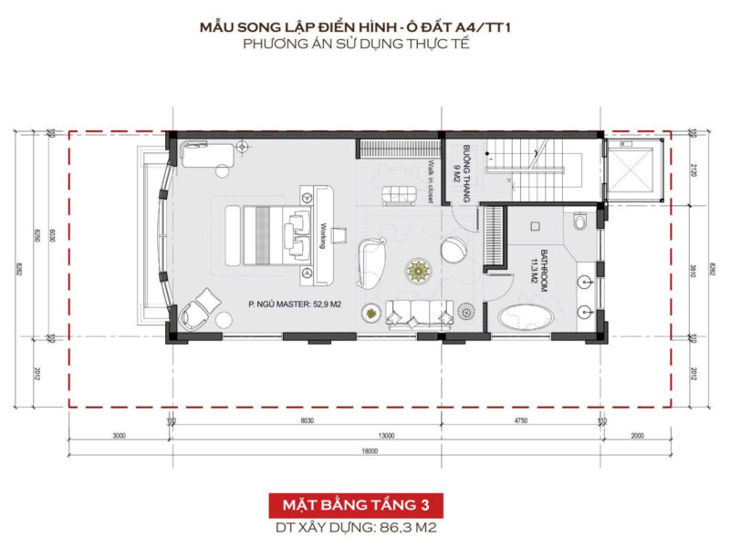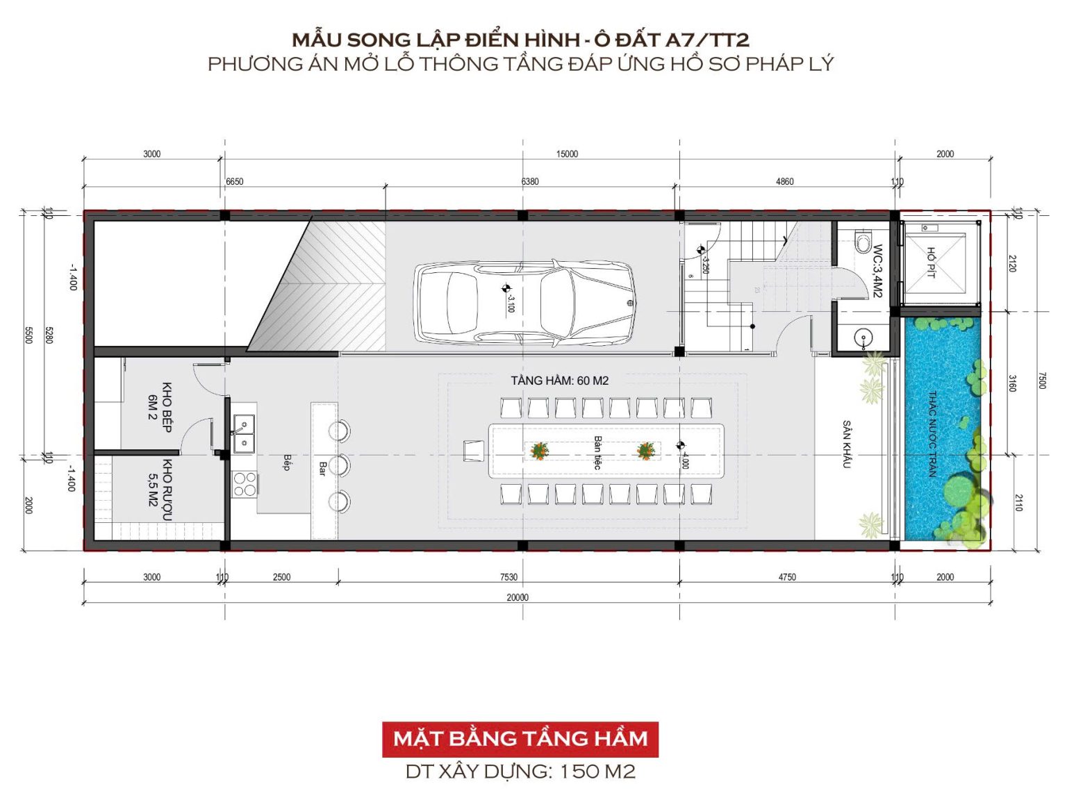 | Loại hình sản phẩm: | 172 Biệt thự song lập có tầng hầm |